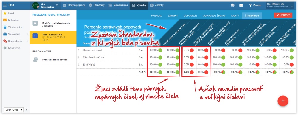 8. Projekty, ale aj testy či domáce úlohy dostali „stav“. Môžete napríklad vrátiť projekt na prepracovanie, alebo označiť, že DÚ nebola hotová. Ak robíte test online a povoľujete žiakom viac pokusov, môžete ručne nastaviť, ktorý výsledok sa má žiakovi rátať do známky.